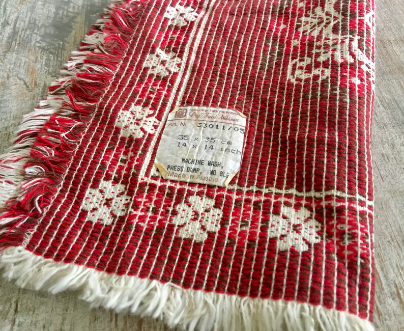 Austrian Table Woven Square Vintage Tyrol Folk Art Textile Red