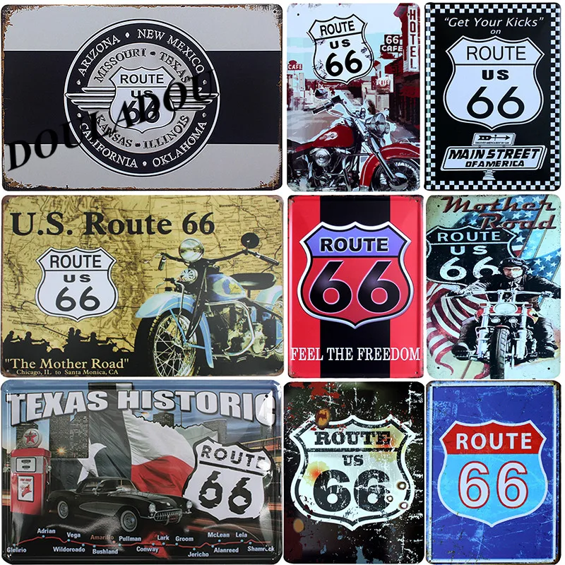 Douladou Usa Route66 Vintage Metal Painting Decor Pub Cafe Hotel