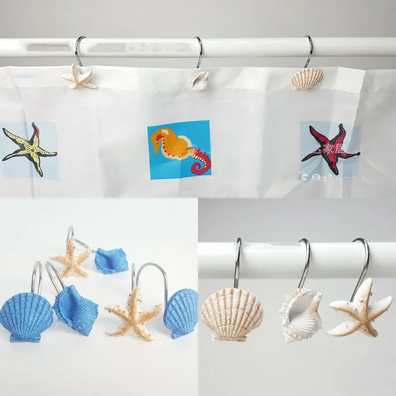 12pcs Seashell Shower Curtain Hooks Bathroom Beach Shell Decor