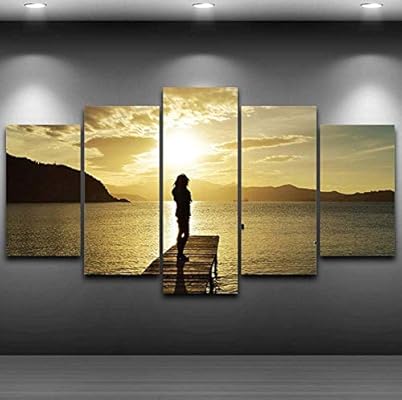 Canvas Wall Art Pictures Home Decor 5 Panel Sunset Seaside Bridge