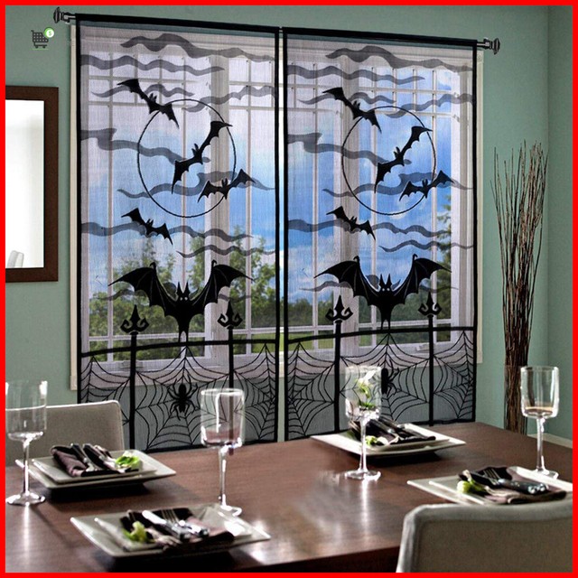 Sheer Curtains Black Lace Door Window Curtain Spider Web Bats Door
