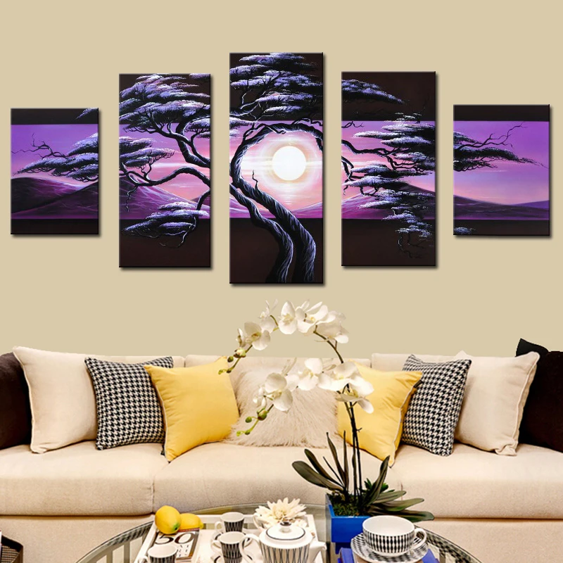 Modern Handpainted Pine Tree Sunrise Landscape Oil Paintings For