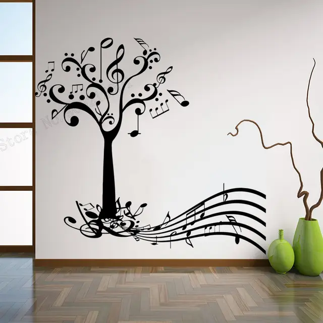 Art Wall Sticker Music Tree And Keys Notes Room Decoration Paper