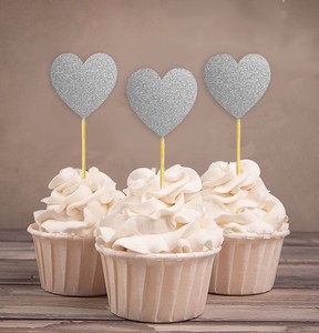Heart Cupcake Toppers Wedding Birthday Party Dessert