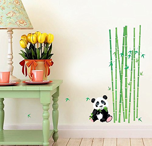 Paper Plane Design Panda With Bamboo Sticks Removable Decor Wall