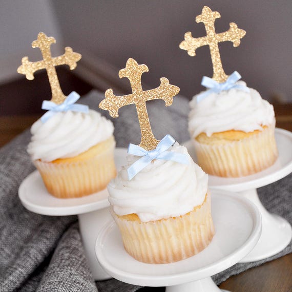 Baptism Decorations For Boys Christening Cross Cupcake Toppers 12