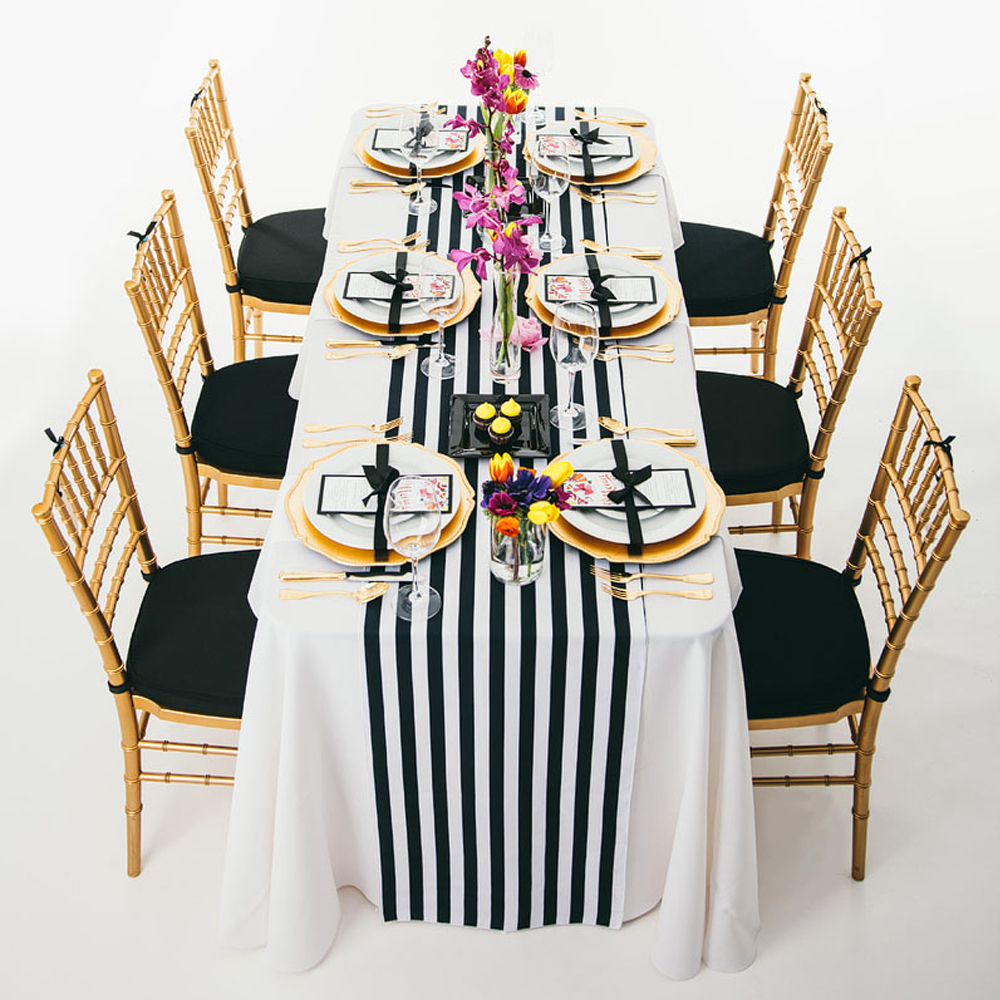 35cm X 275cm Black And White Striped Table Runner For Wedding