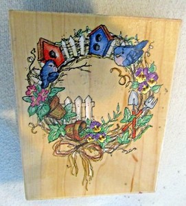 Stampendous Birdhouse Wreath Rubber Stamp Wreath Bluebird Flower