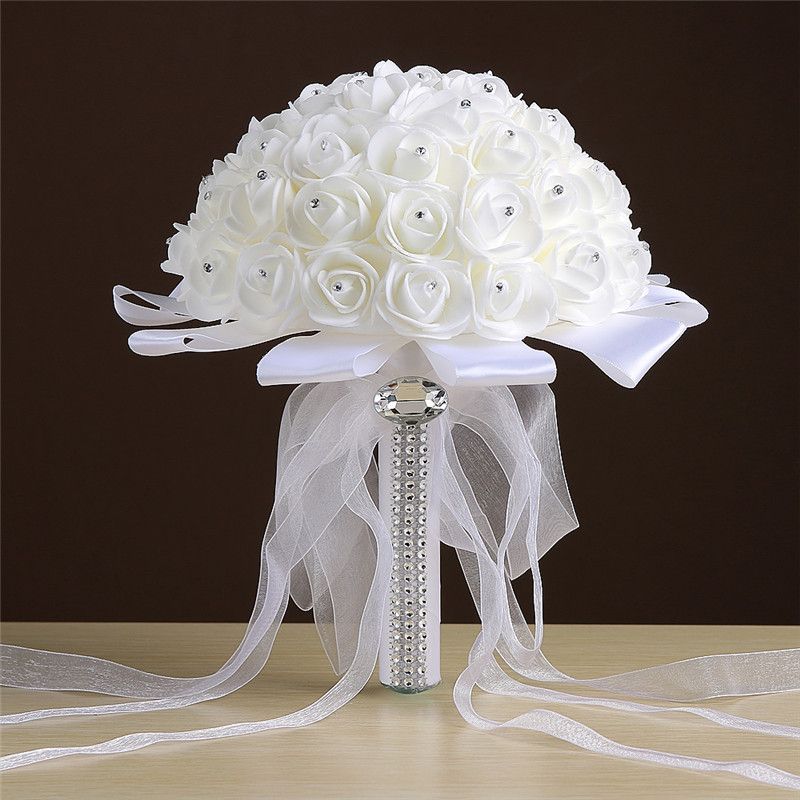2017 Ivory Wedding Bouquet Bridal Decorations With Ribbon Organza