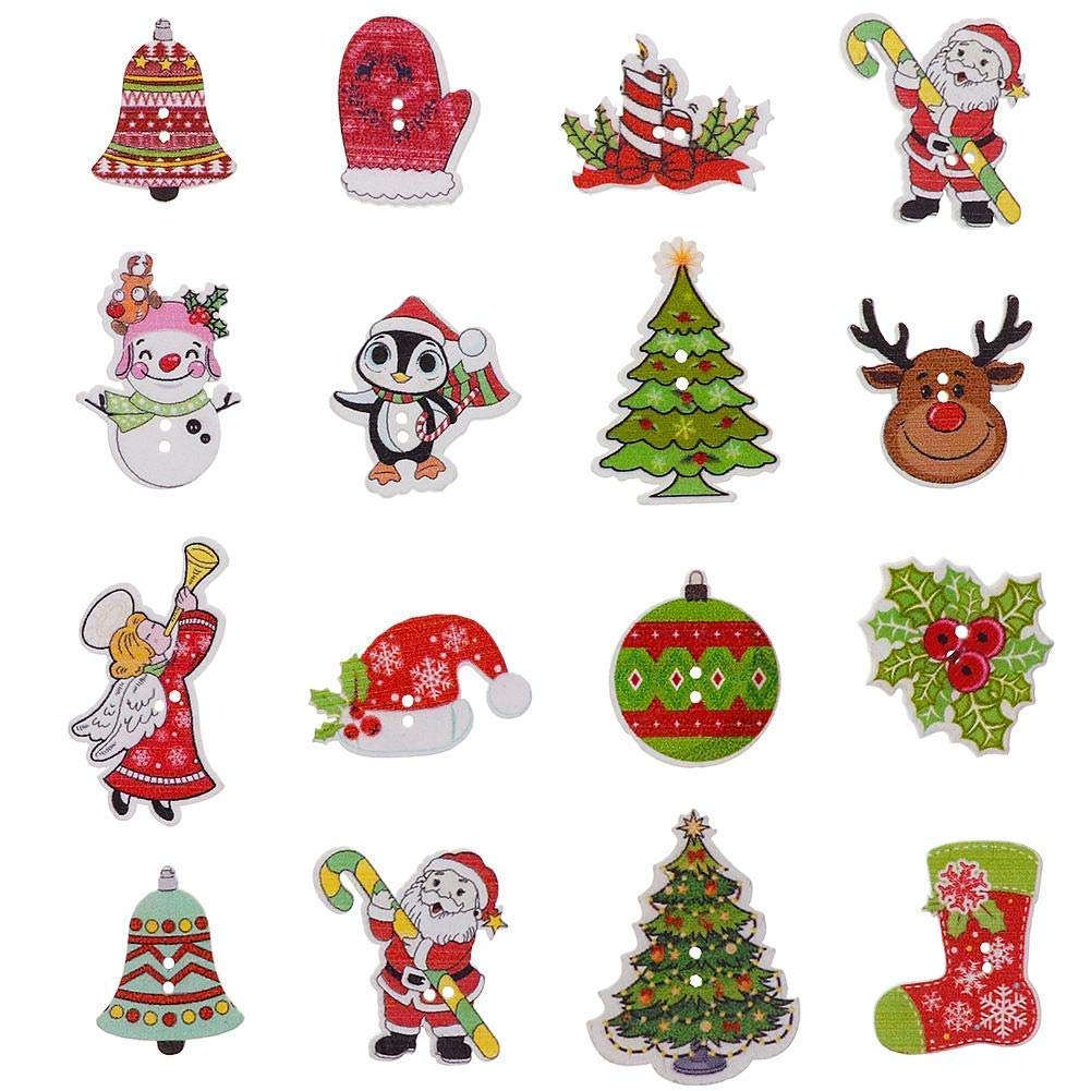Topdo 50pcs Buttons Cartoon Christmas Pattern 2 Holes Handmade