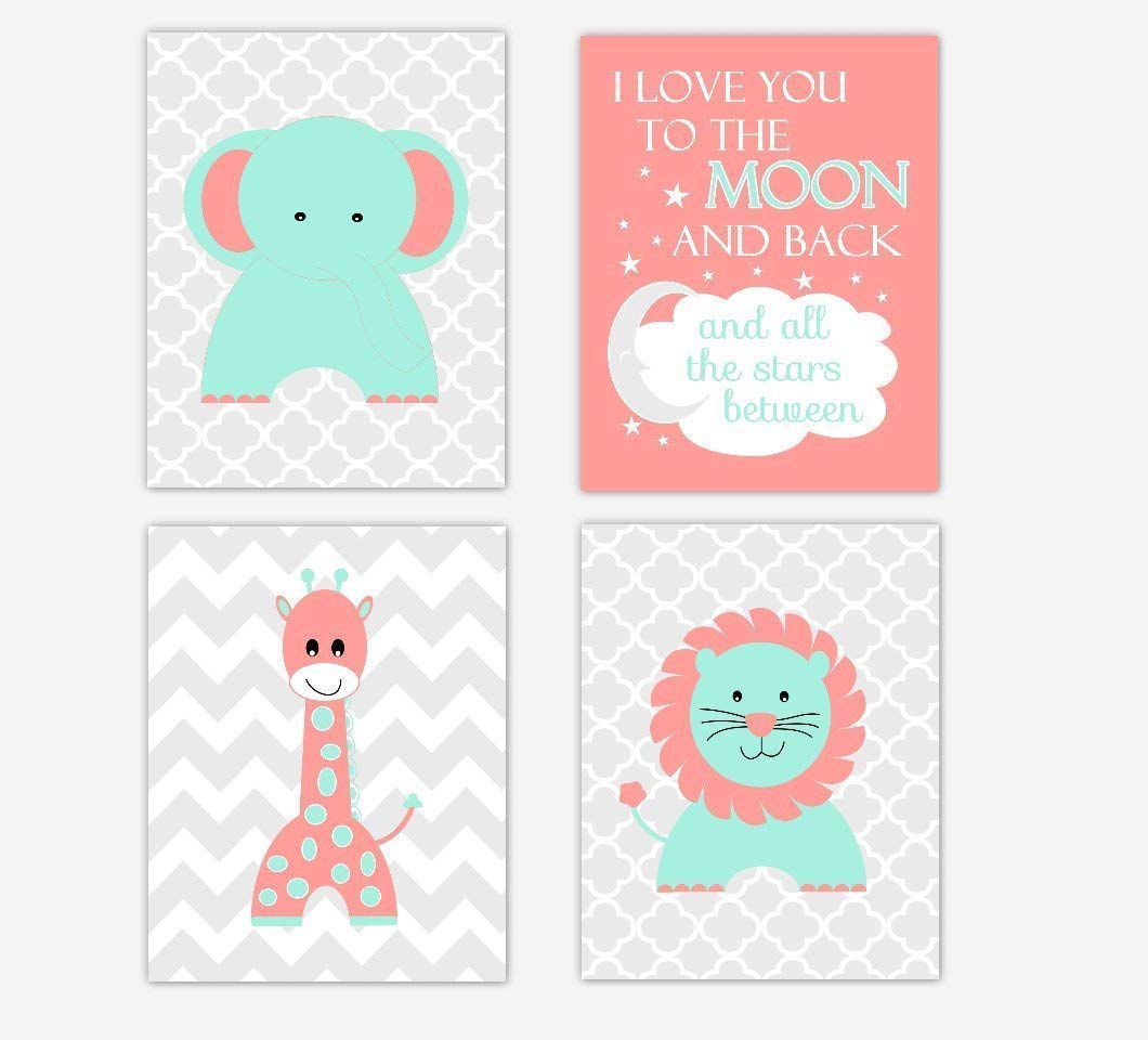Amazon Com Coral Baby Girl Nursery Art Elephant Giraffe