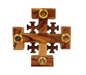 Olive Wood Jerusalem Cross Wall Decor With Holy Land Elements