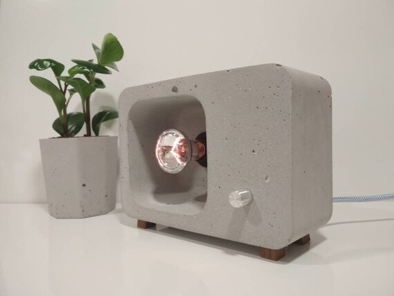 Grey Black Cement Lamp Table Lamp With Controller Decoration Etsy