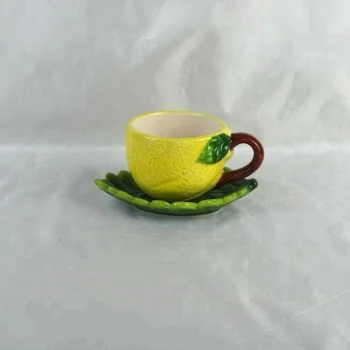 Excellent Lemon Shaped Ceramic Coffee Mug With Saucer For