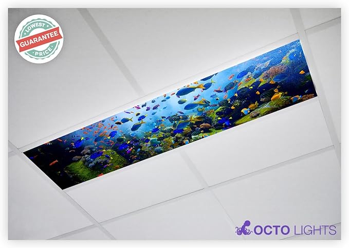 Decorative fluorescent light covers. Fluorescent gallery decorative light covers are a quality lighting upgrade for ordinary fluorescent and led lights and provide a significant contribution to the overall style of any establishment including homes restaurants healthcare facilities schools salons hotels offices and more. From azure skies filled with billowy clouds to cool leafy glades in sun dappled forests from a vast aquarium teeming with exotic sea life to constellations. Its time to get rid of harsh light with a decorative light cover from octo lights.