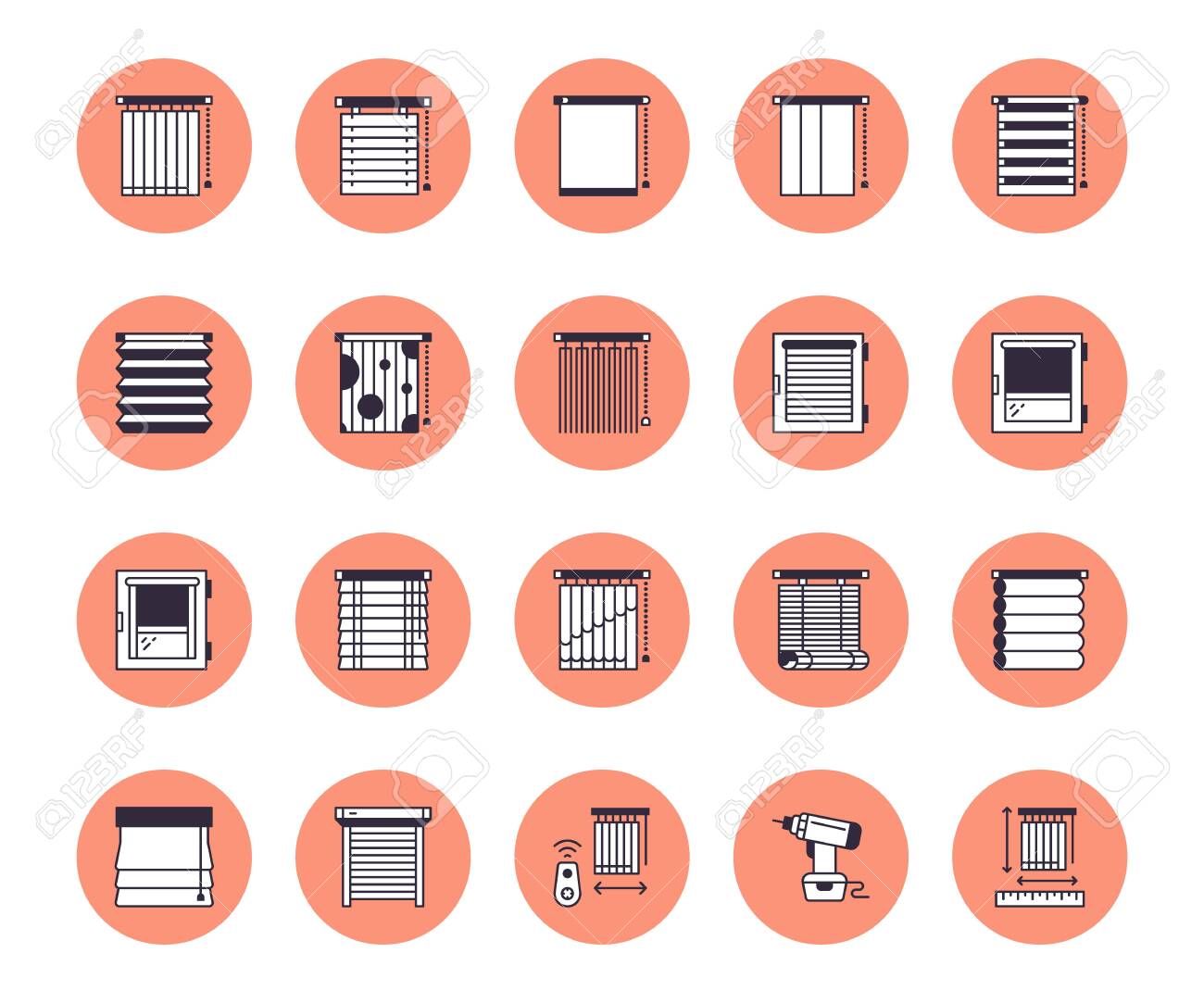 Window Blinds Shades Line Icons Various Stock Vector Royalty Free