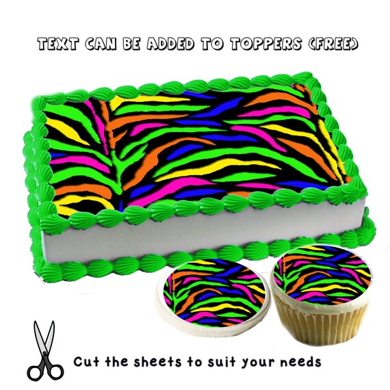 Colorful Zebra Neon Print Pattern Birthday Edible Cake Etsy
