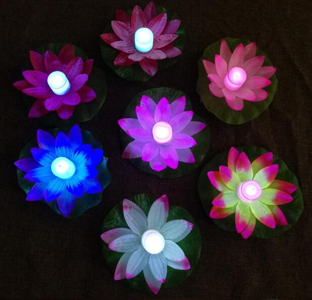 Multicolor Silk Lotus Lantern Light Floating Candles Pool