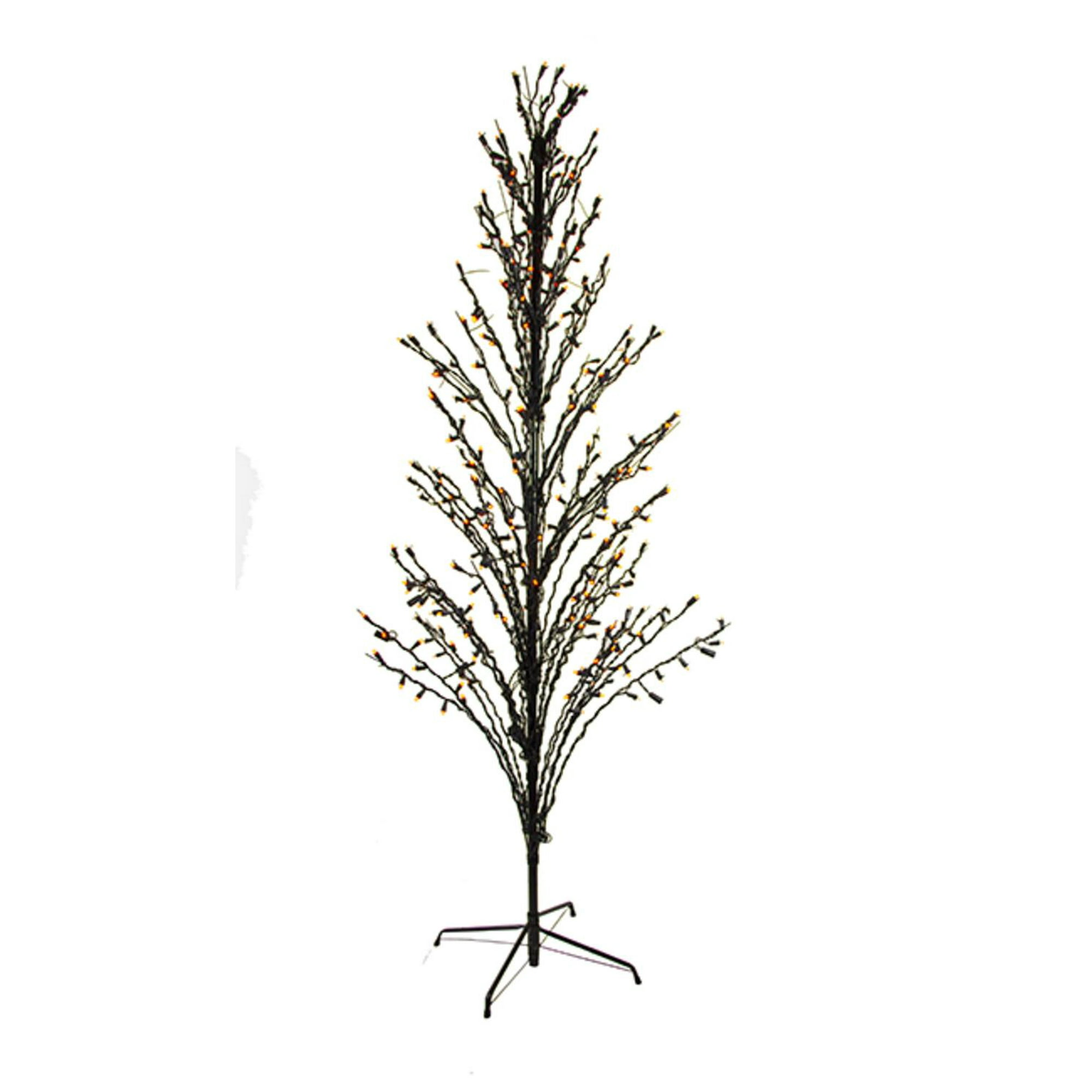 4 Orange Led Lighted Halloween Cascade Twig Tree Outdoor
