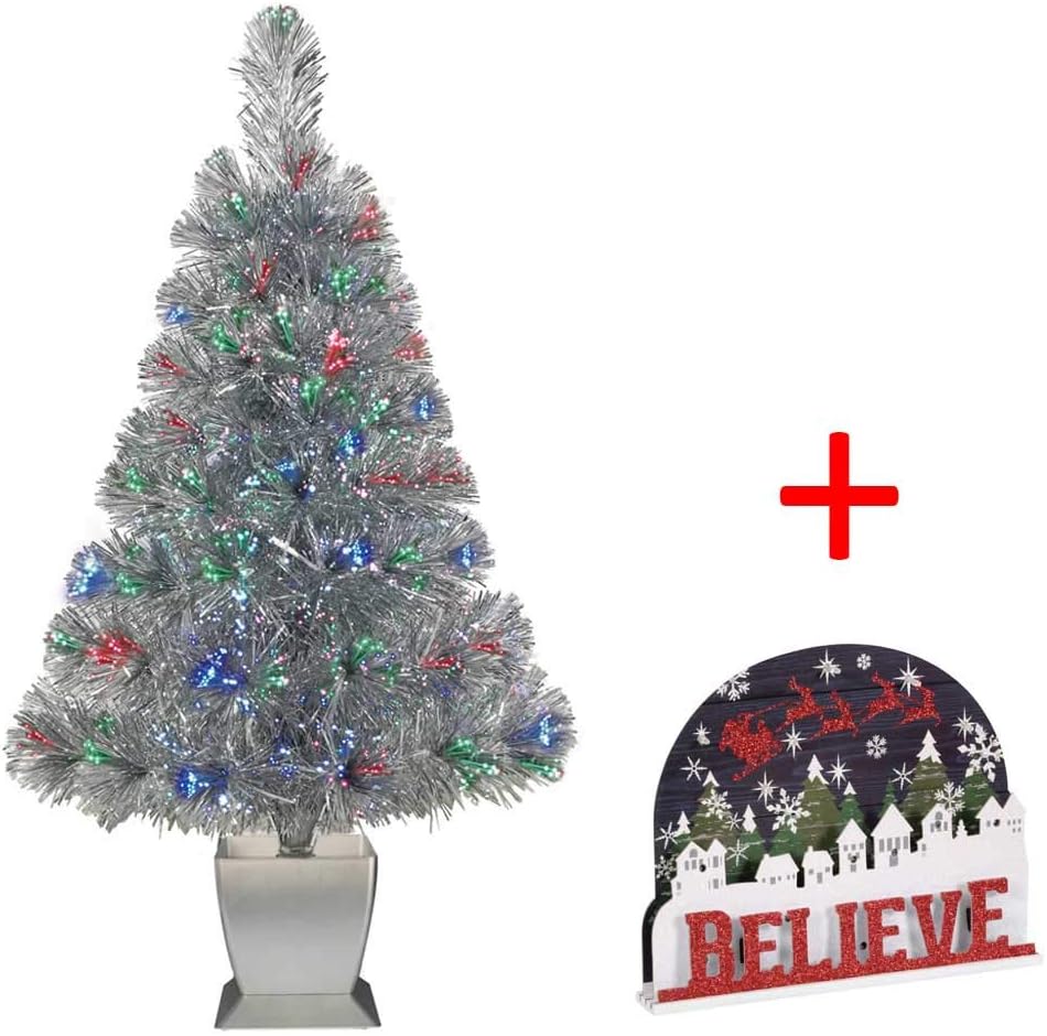 Amazon Com Holiday Time Pre Lit 32 Silver Fiber Optic Artificial