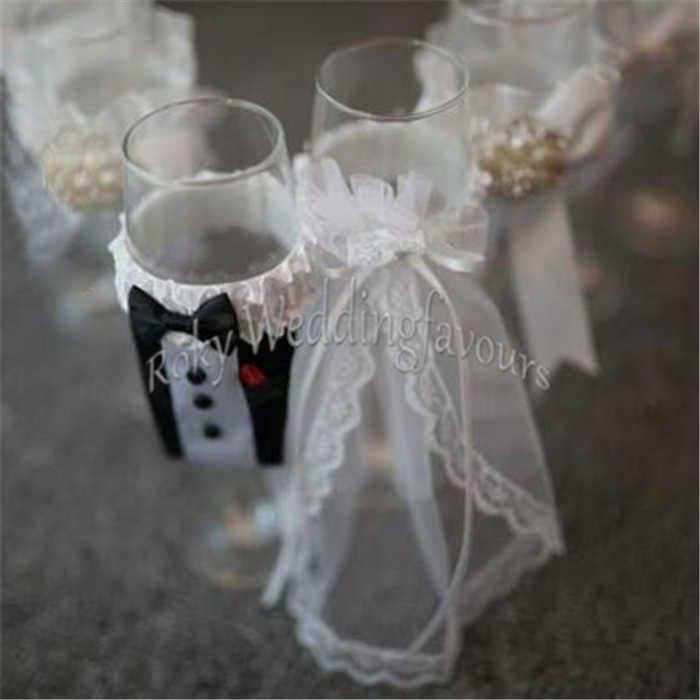 Wedding Champagne Glasses Decorations For Bride Groom And