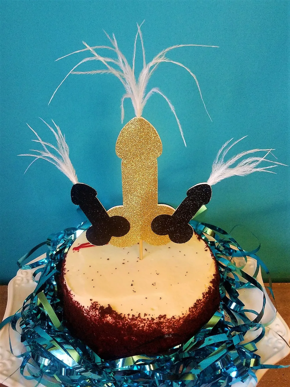 Bachelorette Party Penis Cake Topper With Feathers Bachelorette