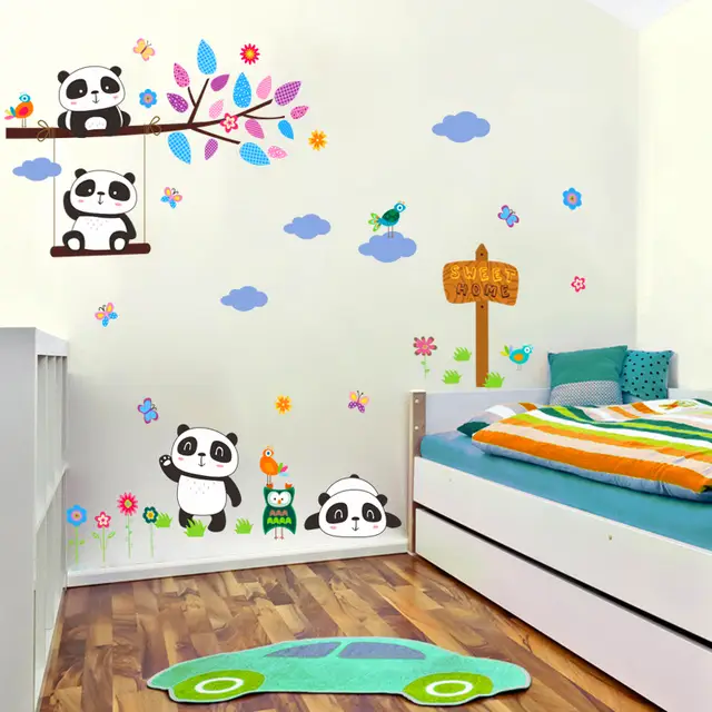 Online Shop Lovely Forest Panda Birds Tree Branch Wall Stickers