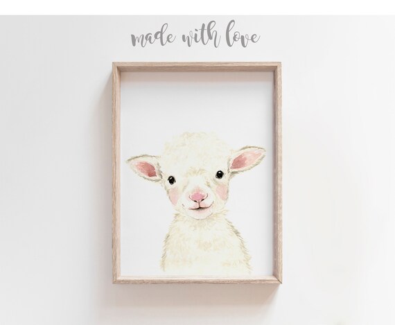 Baby Lamb Print Farm Animal Wall Art Nursery Decor Modern