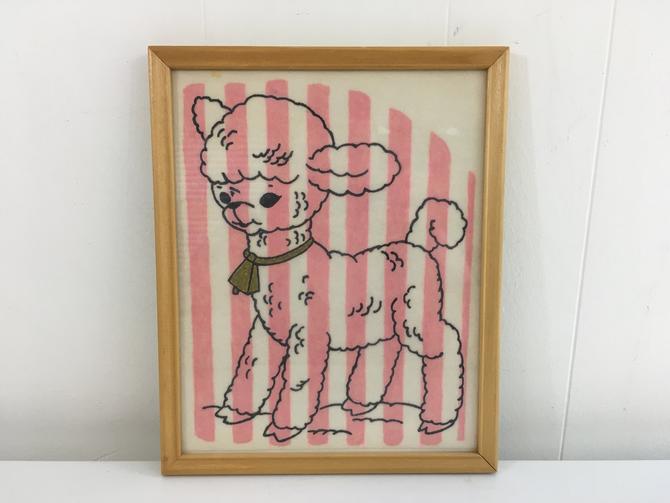 Vintage Framed Lamb Original Art 1950s Powder Pink Stripes Wood