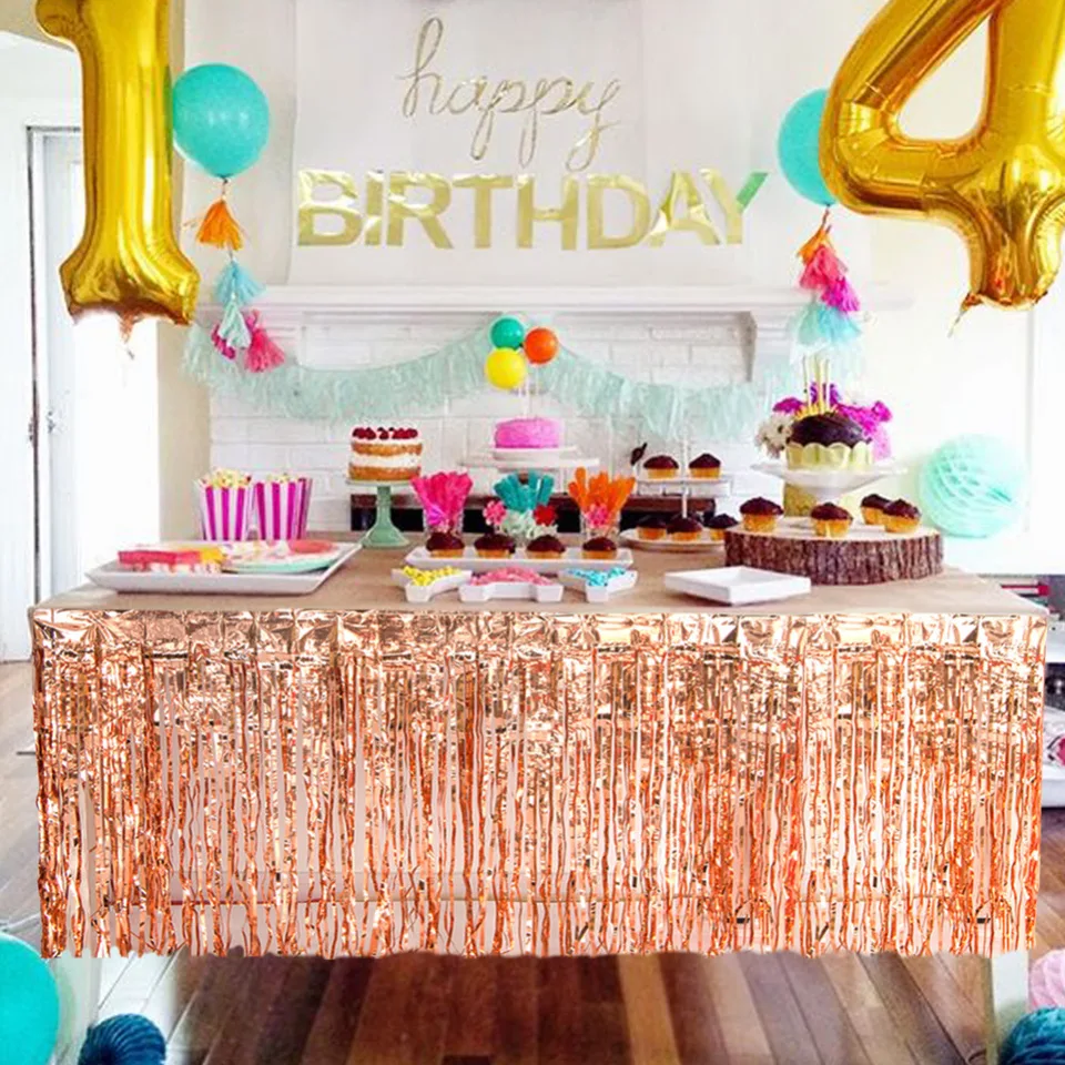 1pc Metallic Fringe Foil Tinsel Table Skirt For Summer Luau Party