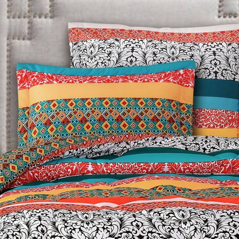 Twin Twin Xl 5pc Boho Stripe Comforter Set Turquoise Tangerine