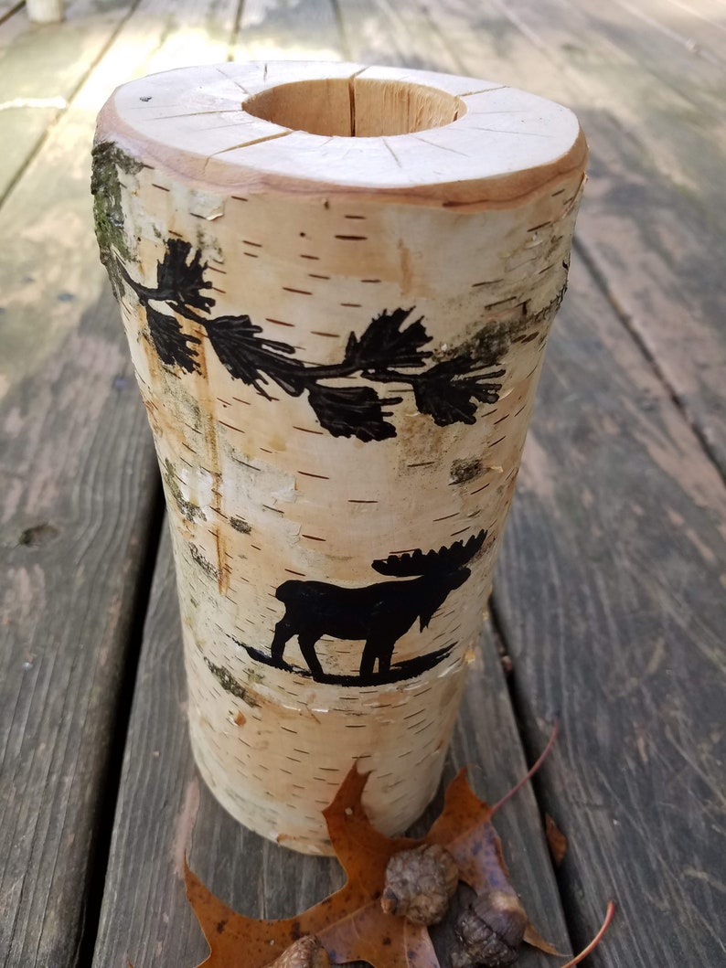 Birch Tree 8 Candle Holder With Moose Painting Woodland Etsy