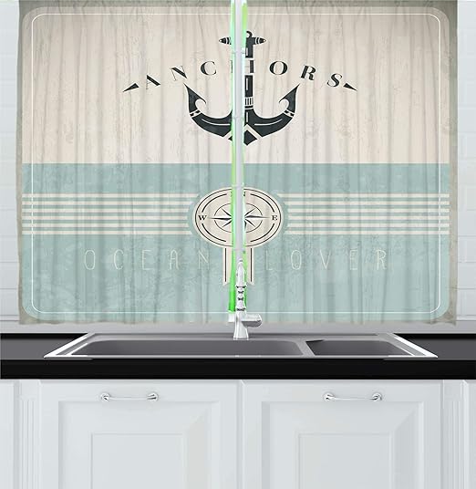 Amazon Com Ambesonne Nautical Kitchen Curtains Aged Ocean Lover
