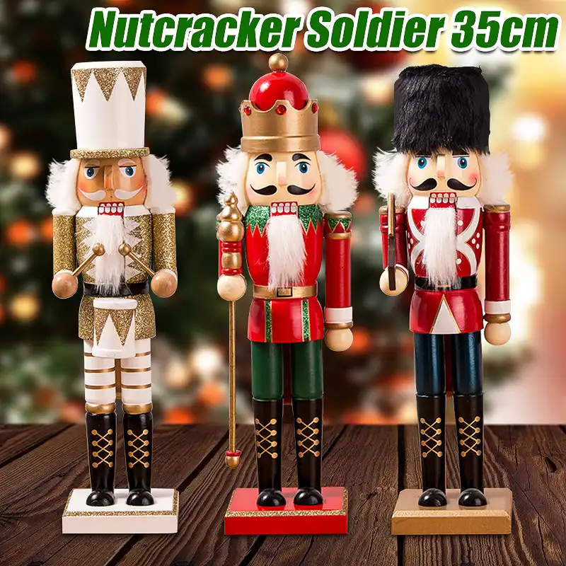 35cm Wooden Nutcracker Doll Puppet Figurines Christmas Decor Child