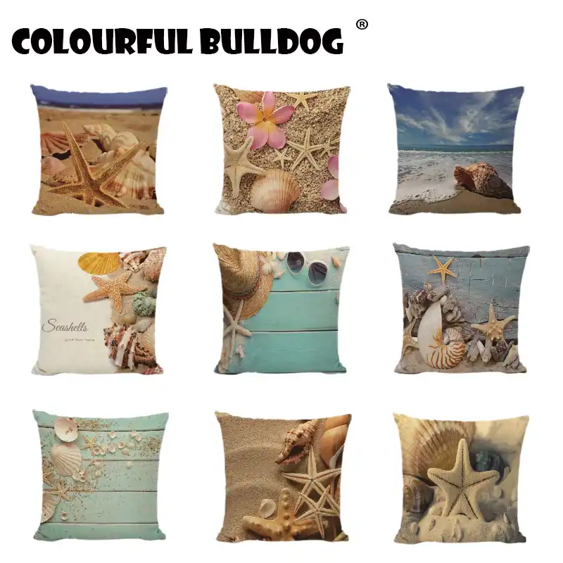 Ocean Style Cushion Cover Print Hawaiian Shells Starfish Hats