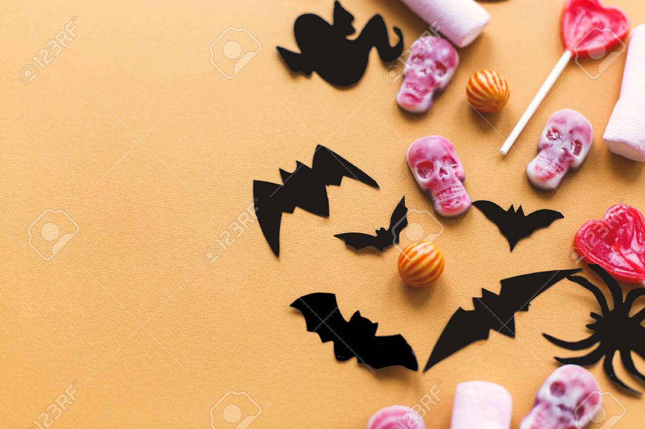 Halloween Candy Skulls Black Bats Ghost Spider Paper