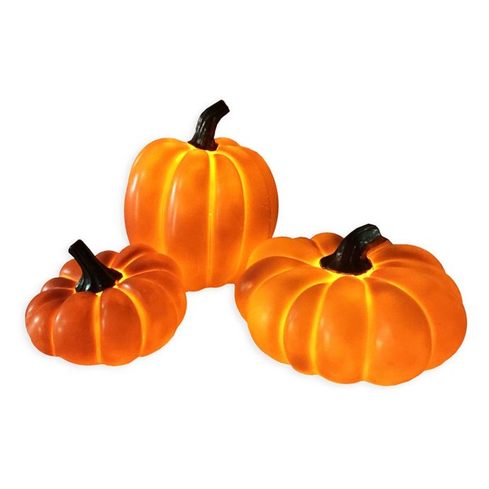 Pre Lit Pumpkin Decorations Set Of 3 Bed Bath Beyond