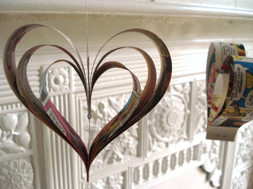 Heart Decorations Made From Comic Books Vintage Recycled Etsy
