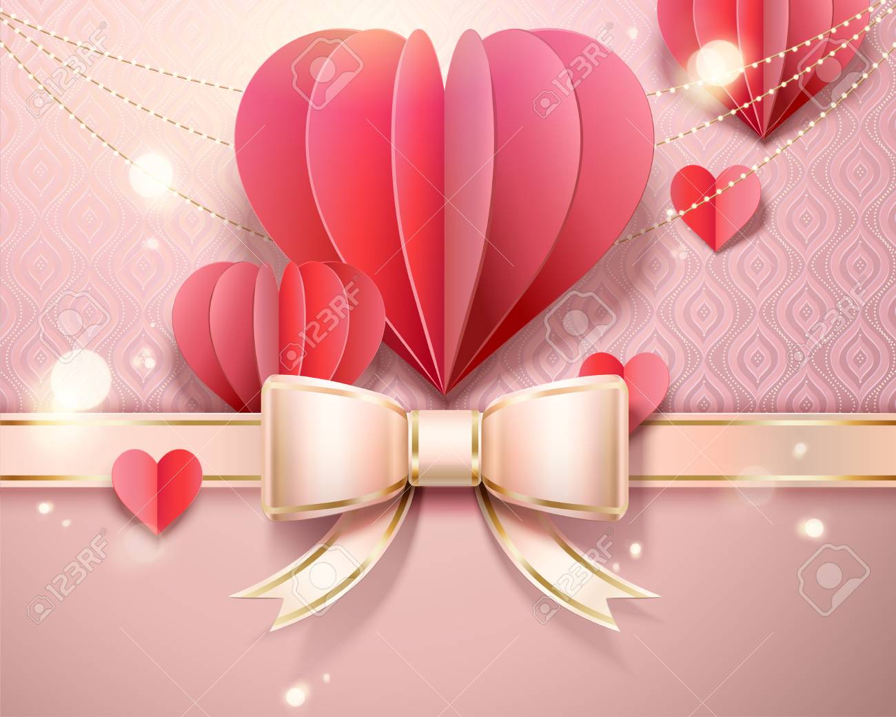 Valentine S Day Card Template With Paper Heart Shaped Decorations