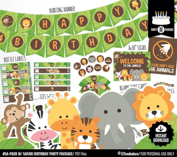 Safari Birthday Decorations Package Printable Jungle Theme Etsy