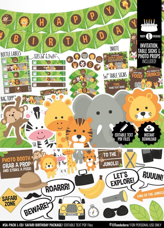 Self Editable Safari Birthday Decorations Package Printable Etsy