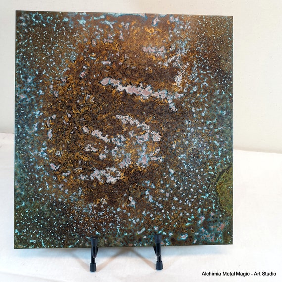 Large Metal Decor Sheet Rustic Multi Color Patina Brass Plate Etsy