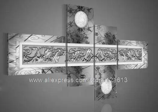 Wall Art Linen With Silver Flower Made Of Feathers Under