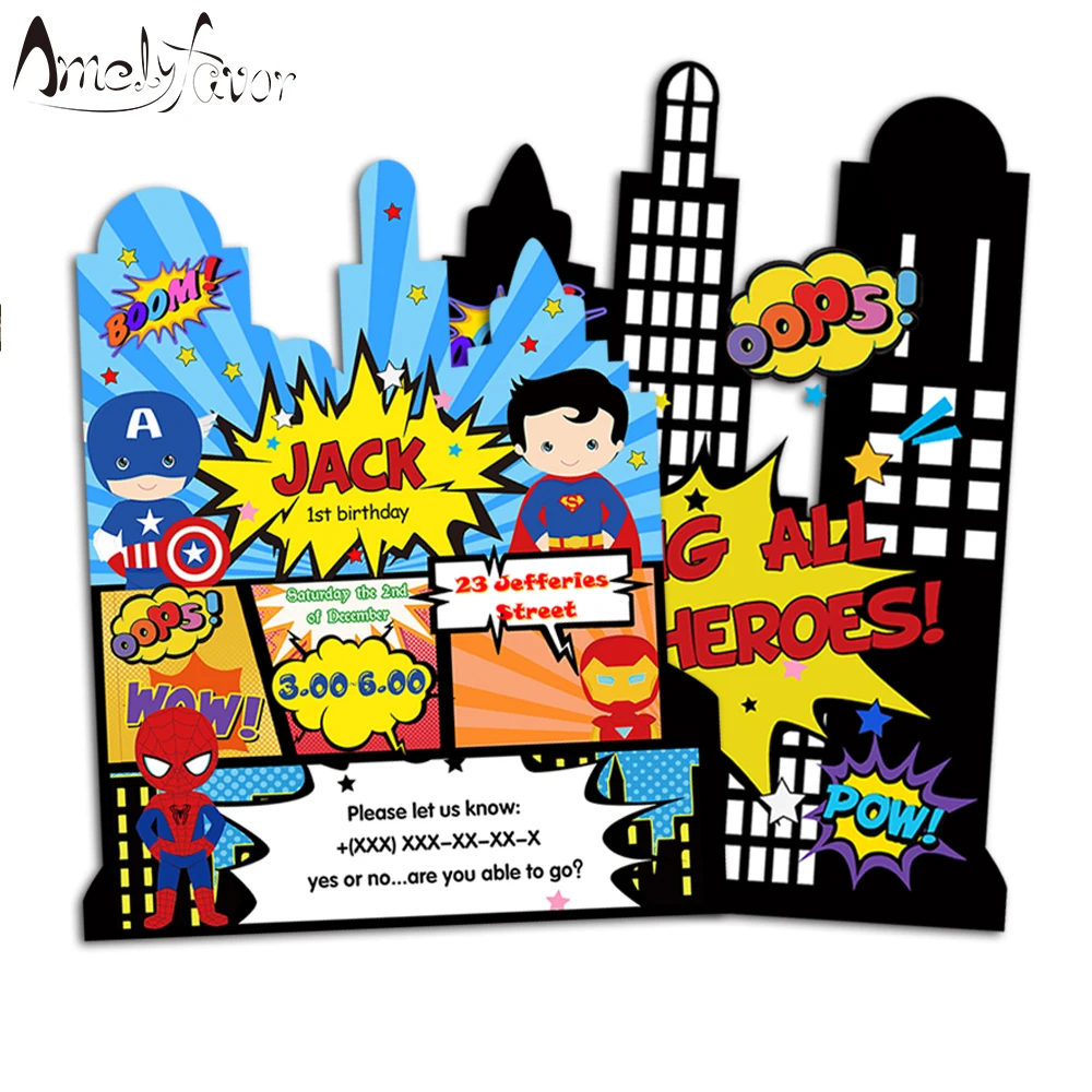 Superhero Theme Invitation Card Party Supplies Super Hero
