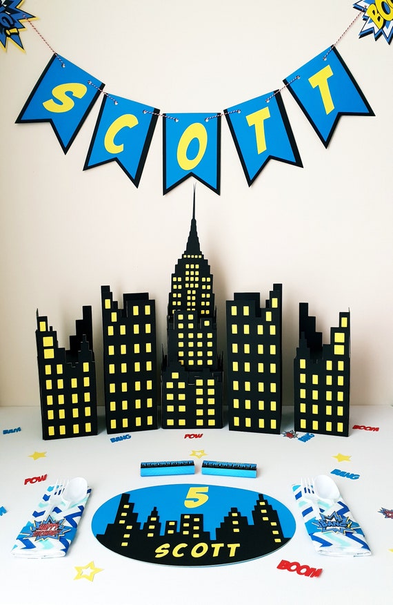 Superhero Comic Book Skyline Table Decoration Superhero Etsy