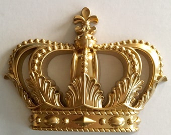 This ornate queens crown features clear acrylic jewels set into its antique gold finished surface. Princess queen crown wooden wall decor art hanger handmade.