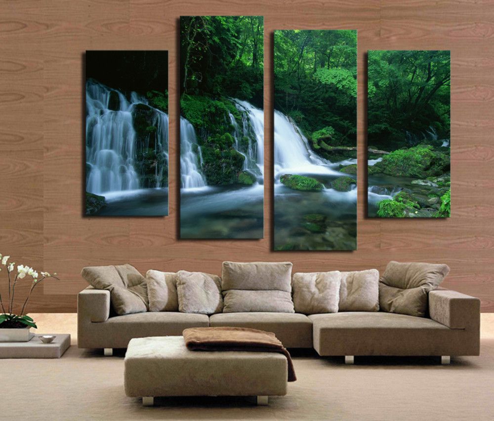2020 4 Panel Green Tree With Waterfall Landscape Large Hd Picture