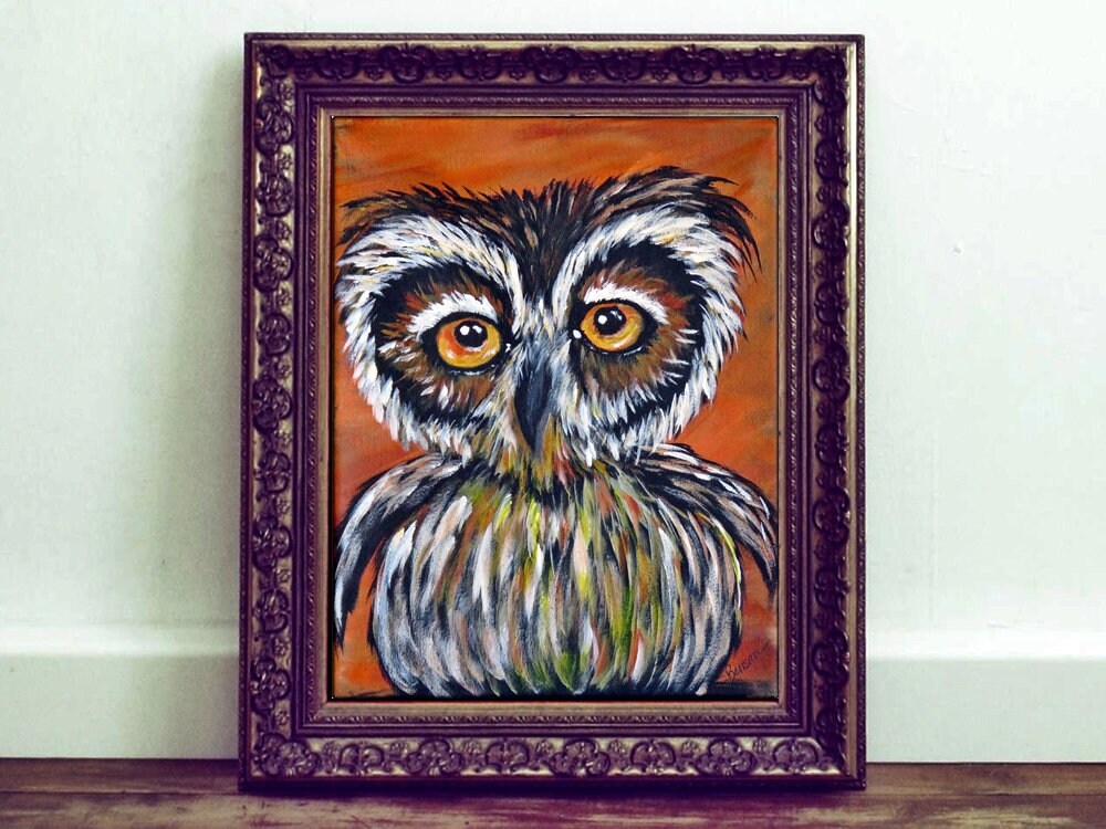 Owl Painting Original Acrylic Canvas Painting Whimsical Home