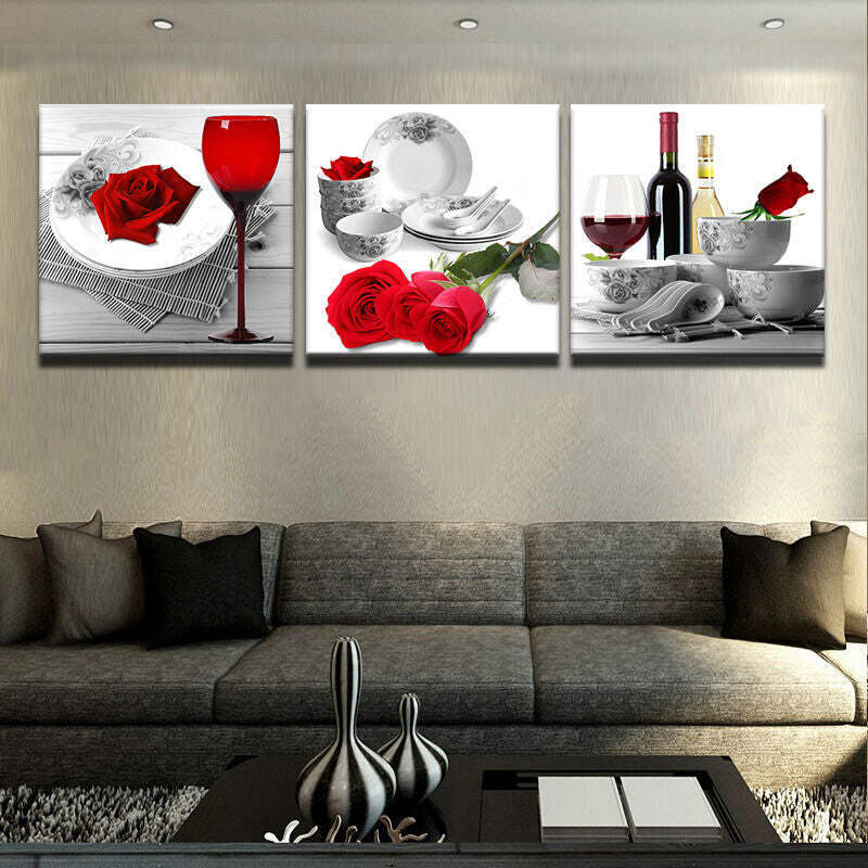 Red Roses And Wine Canvas Wall Art Print For Cafe And Kitchen