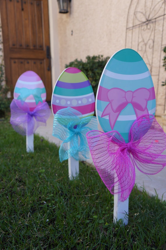 Easter Egg Yard Stake Wood Easter Outdoor Decoration Yard Etsy